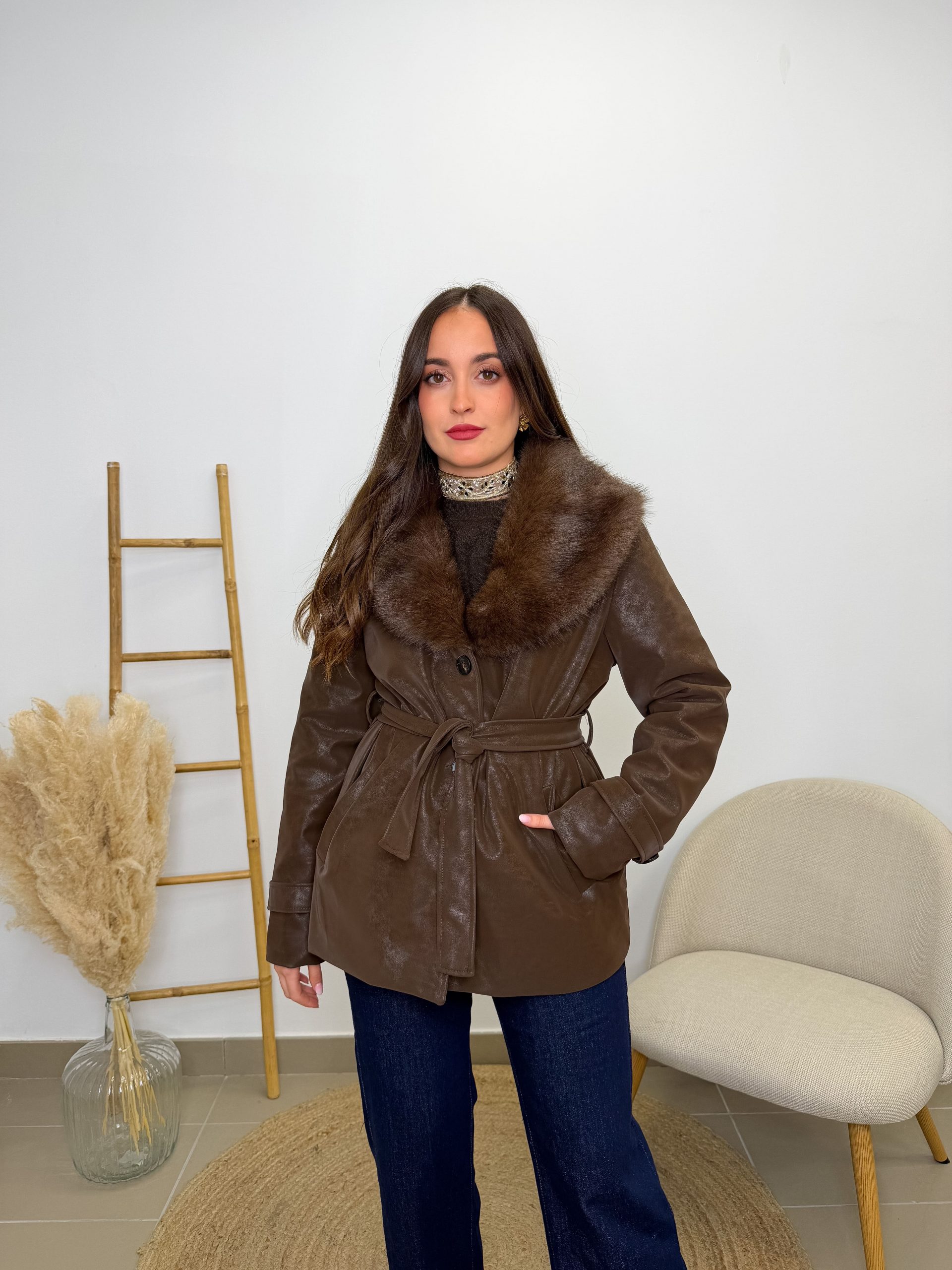 Gordo, gustoso y con presencia. De esos que te pones y notas al instante el calorcito bueno. La piel en tono marrón chocolate es pura elegancia, profunda y envolvente, perfecta para los días fríos en los que quieres ir abrigada sin renunciar al estilo.
