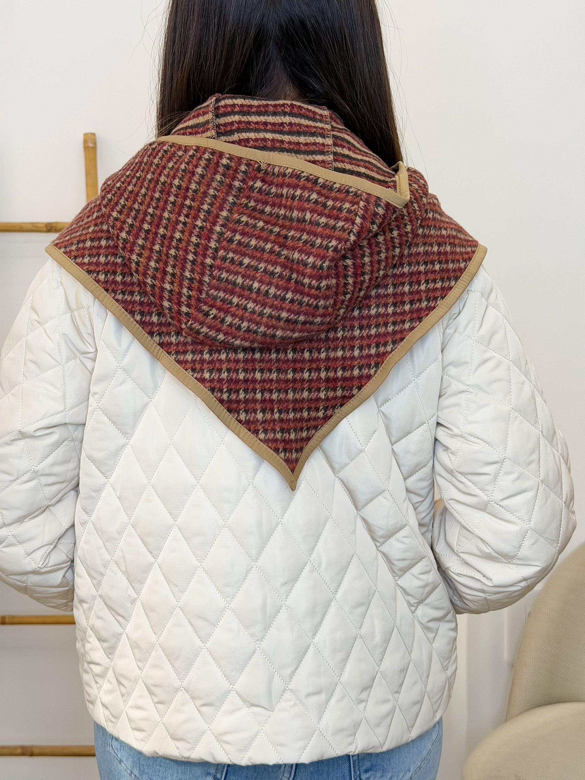 El estampado de cuadros le da ese aire especial, entre clásico y bohemio, que queda precioso con tonos neutros. La capucha suma abrigo y estilo, y se ata delante para llevarlo como más te apetezca, ajustado o sueltecito.