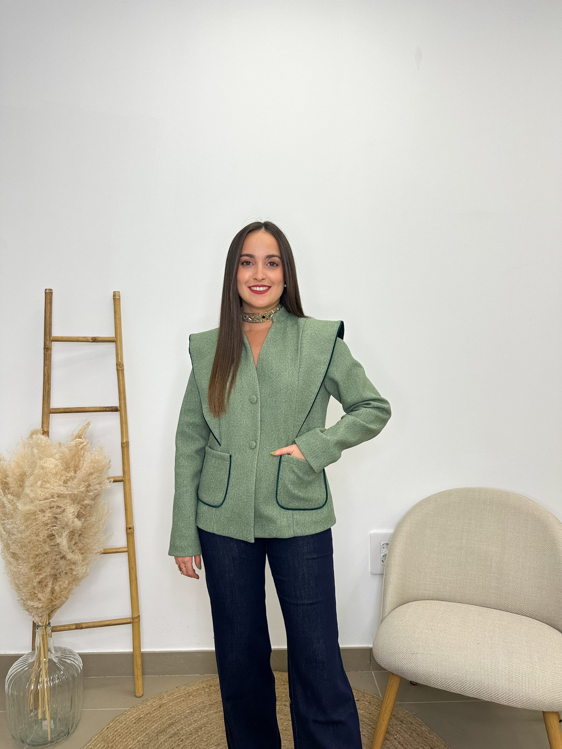 Hay prendas que, nada más verlas, te despiertan ese “ay, qué bonita es”. Esta blazer en verde claro tiene justo ese encanto que te hace mirarte dos veces en el espejo.