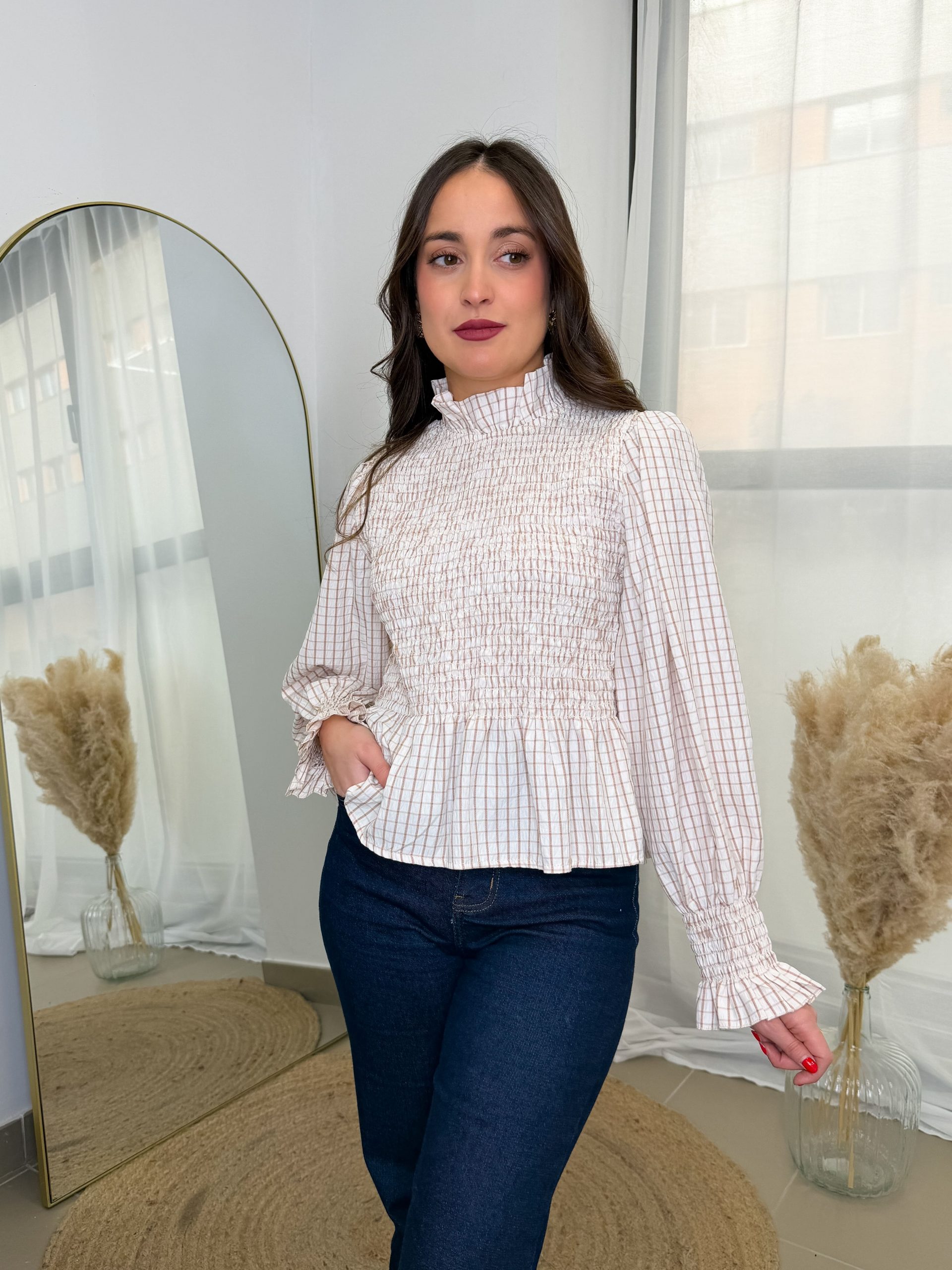 Cuando te la pones, te sientes arreglada, femenina y muy tú. Ideal con vaqueros, pantalones claros o faldas fluidas, para looks de oficina o planes más relajados. De esas camisas que siempre aportan un toque especial ✨