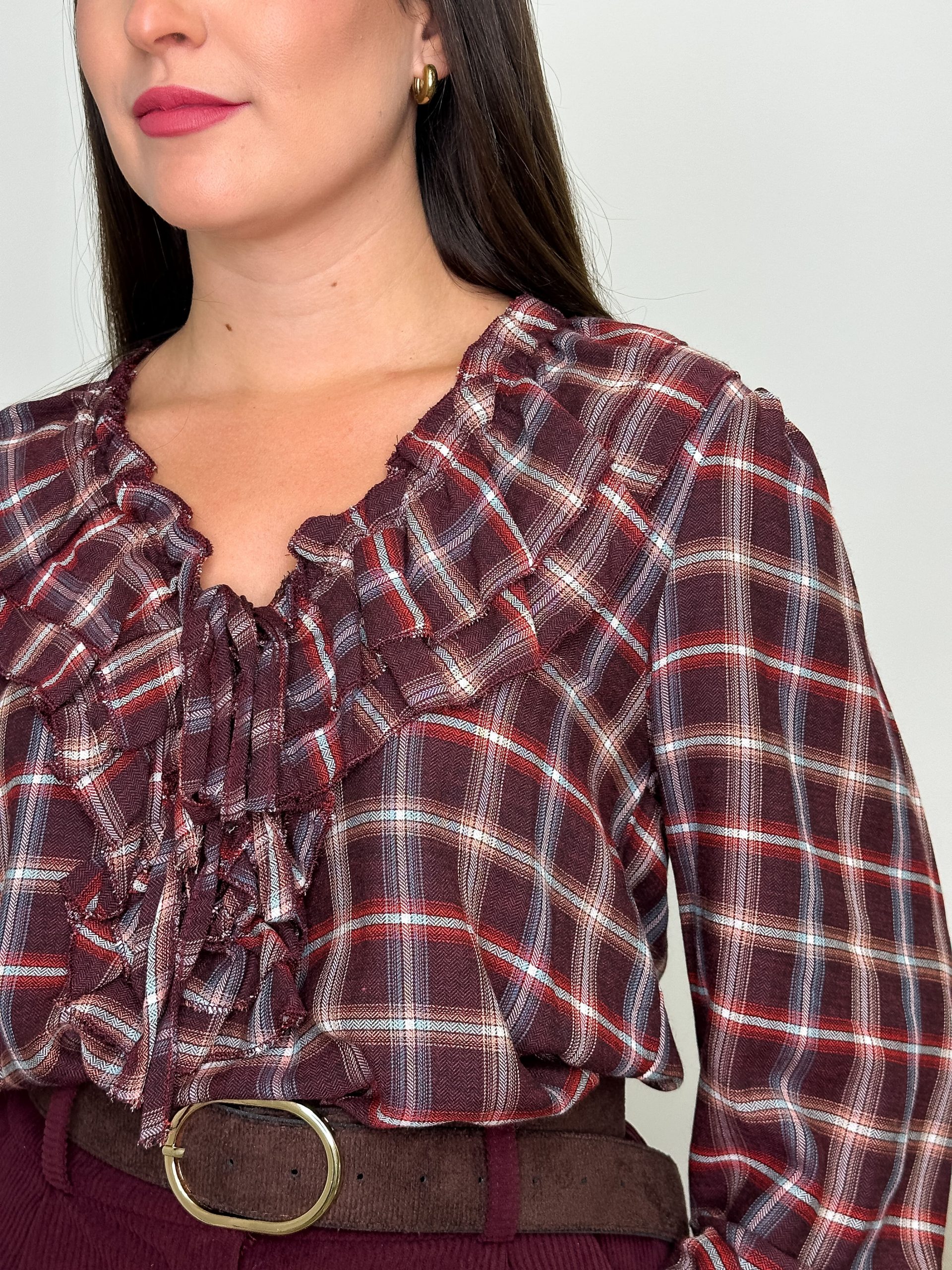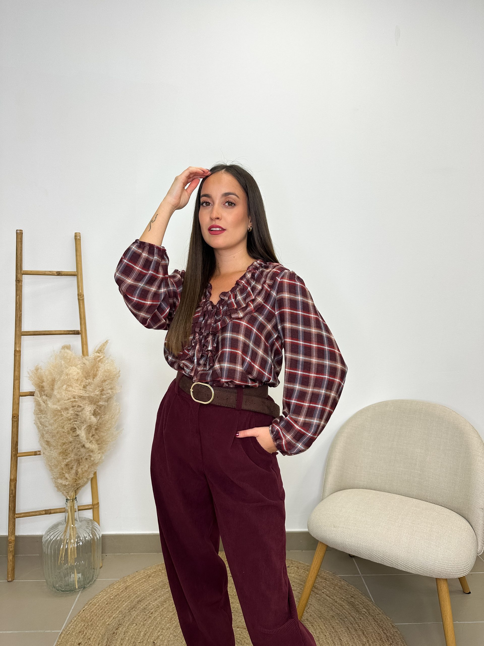 Esta blusa tiene ese encanto delicado que te hace sentir especial desde el primer segundo. El cuerpo de nido de abeja se adapta suave, sin apretar, dibujando la silueta de una forma muy femenina y cómoda.