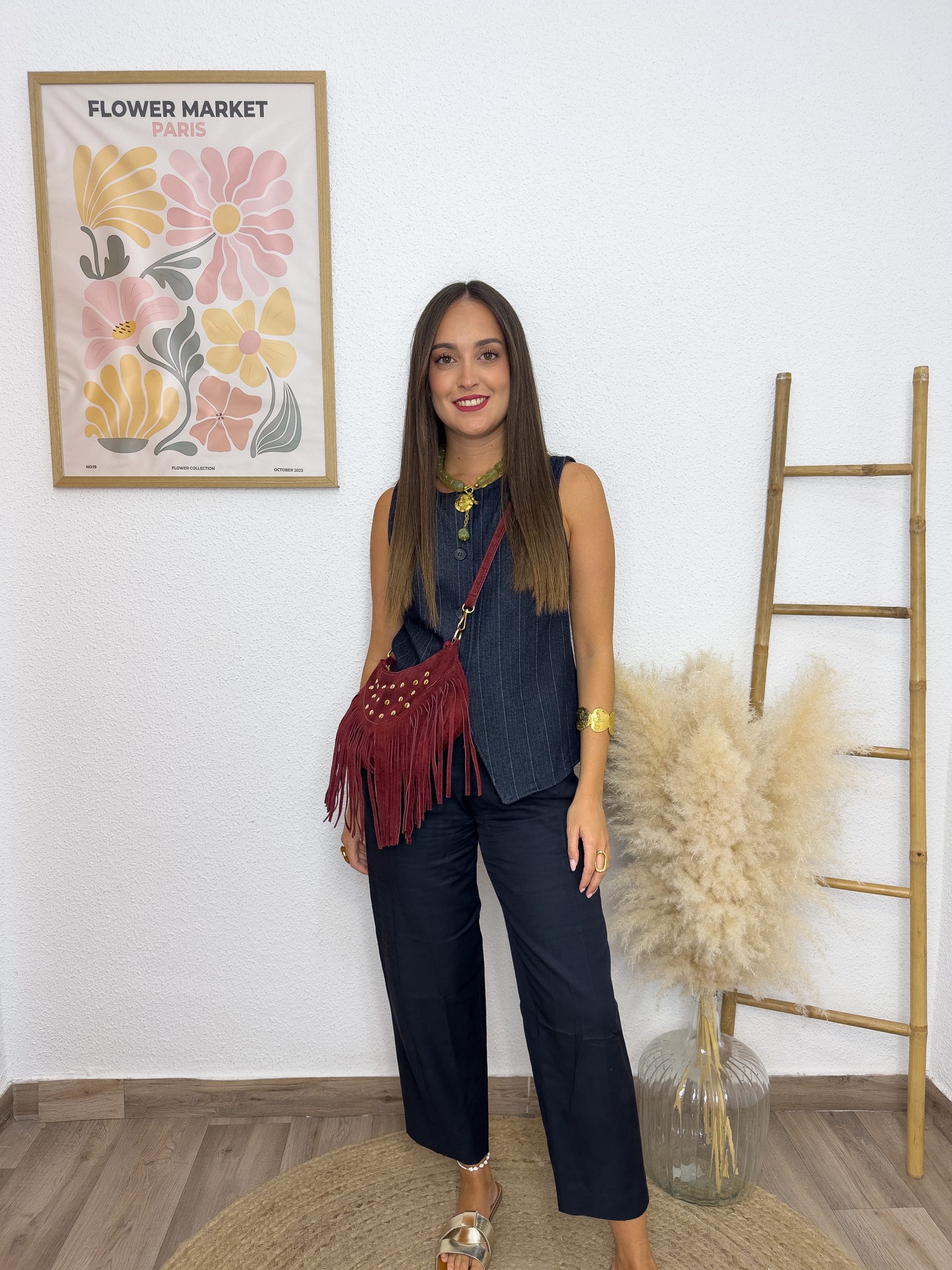 Esta bandolera en color burdeos combina estilo y funcionalidad, convirtiéndose en el complemento ideal para cualquier ocasión.