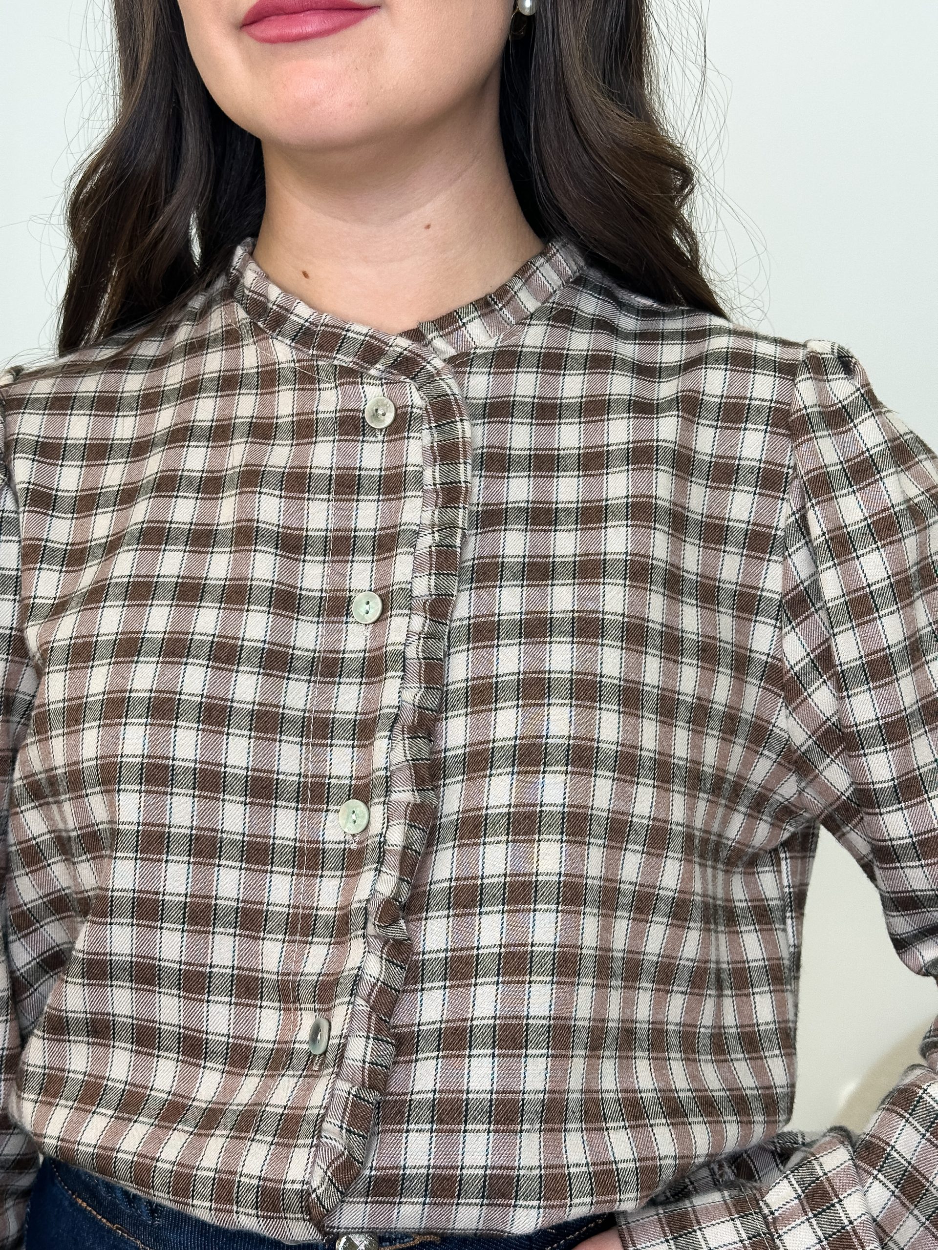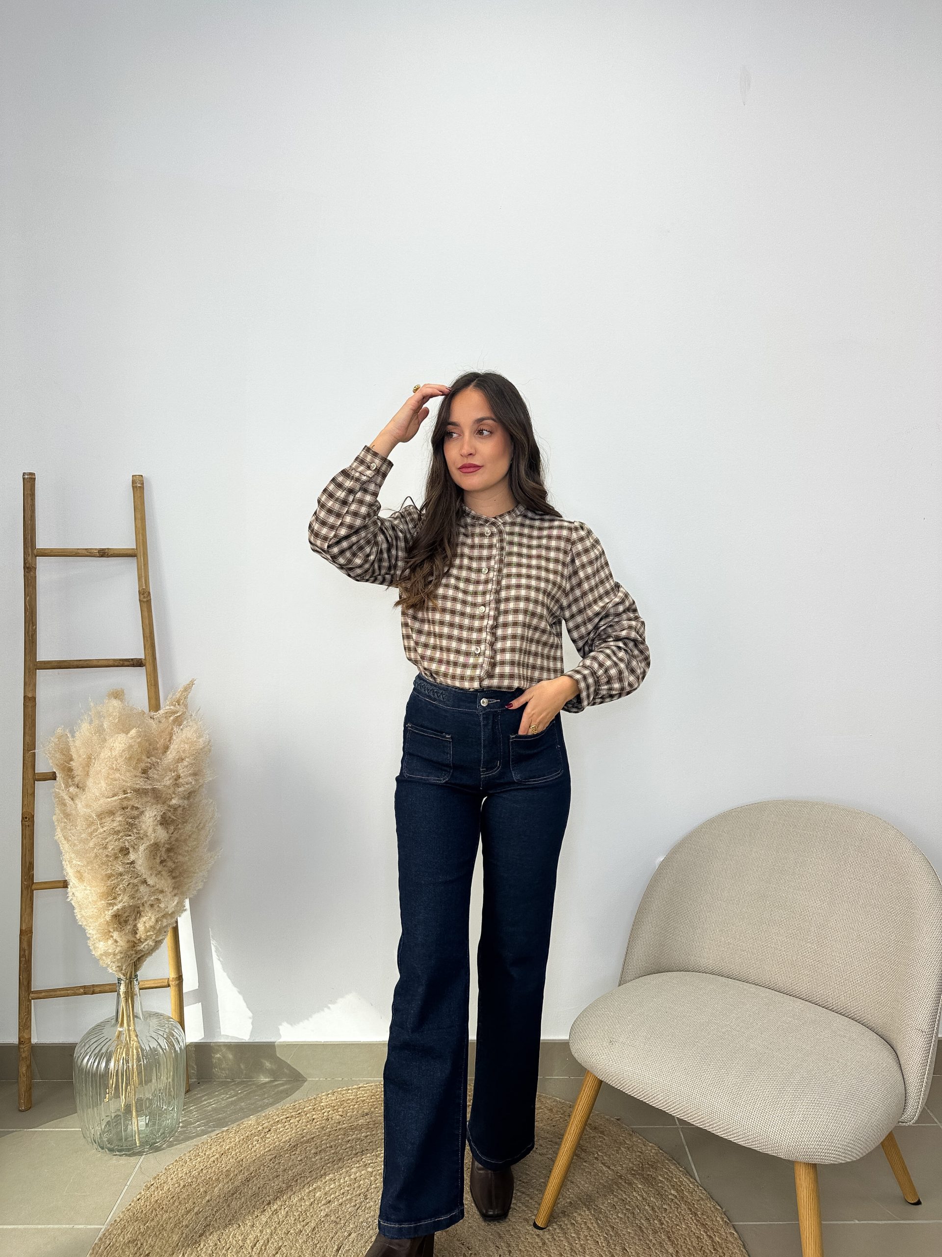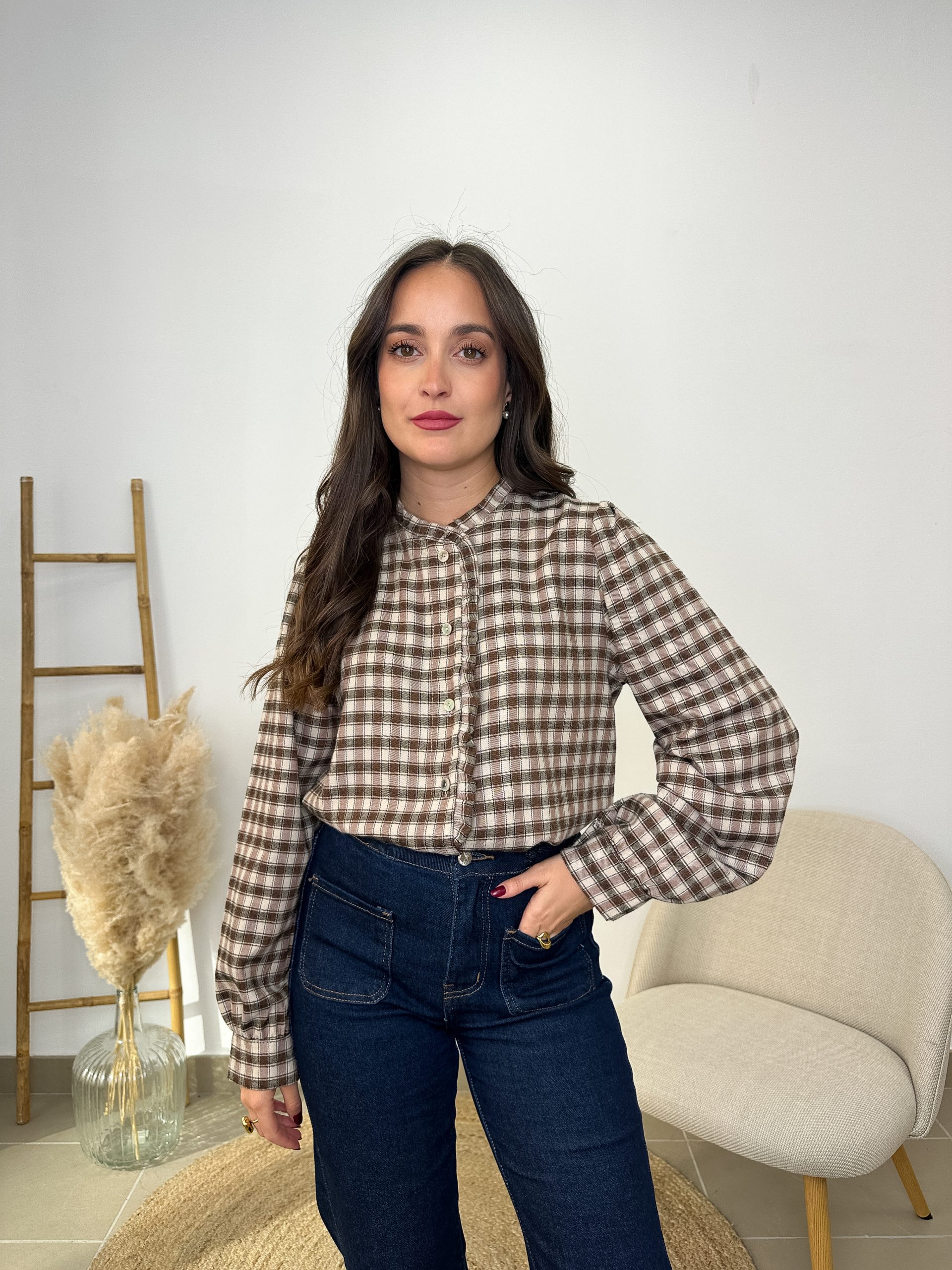 Tiene ese aire de otoño que te abraza al mirarla. Esta camisa de cuadros en tonos marrones y negro es la típica prenda que te pides “para combinar fácil” y acaba siendo tu favorita de la semana.