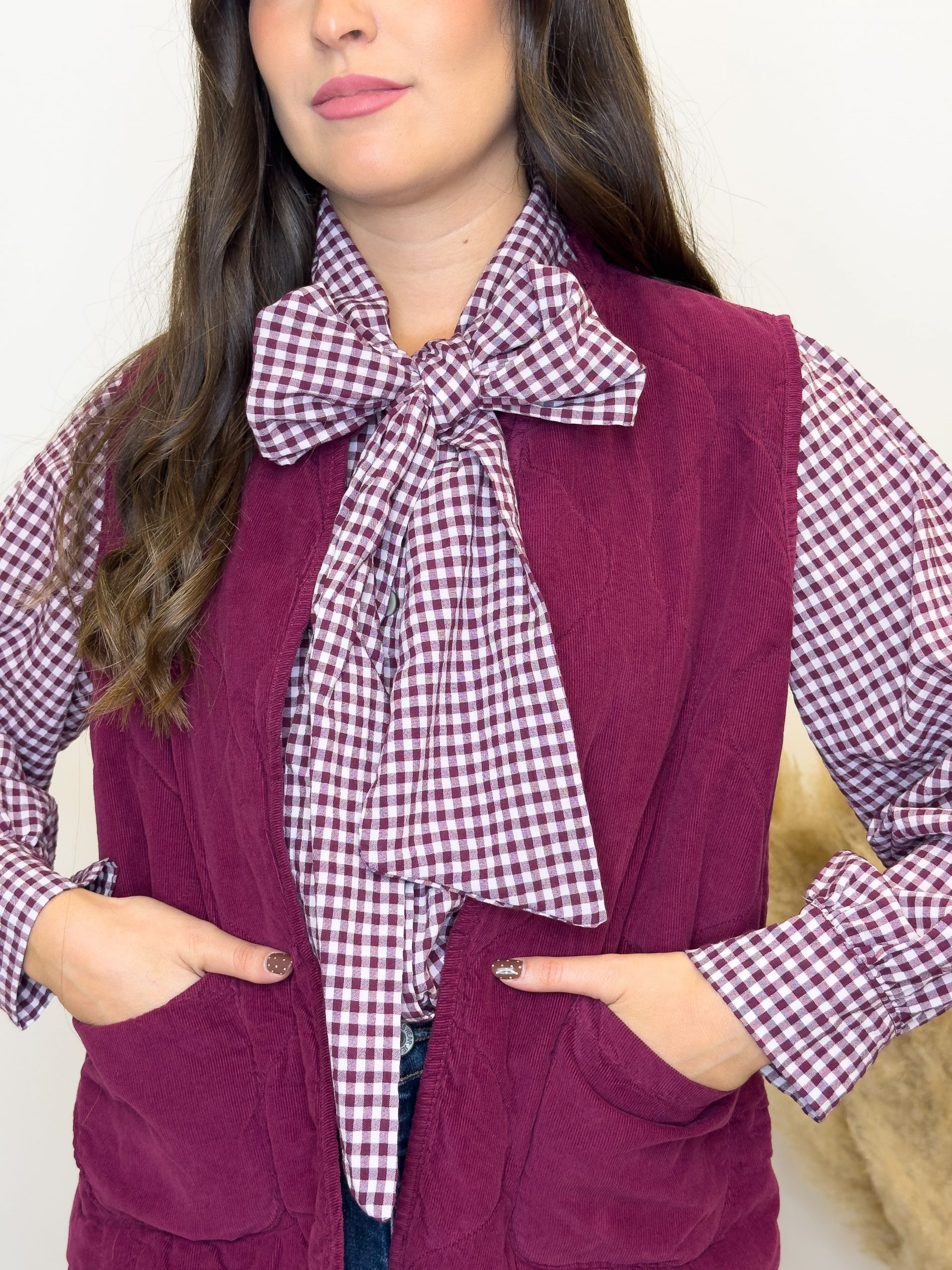 Chaleco de pana buganvilla con volante