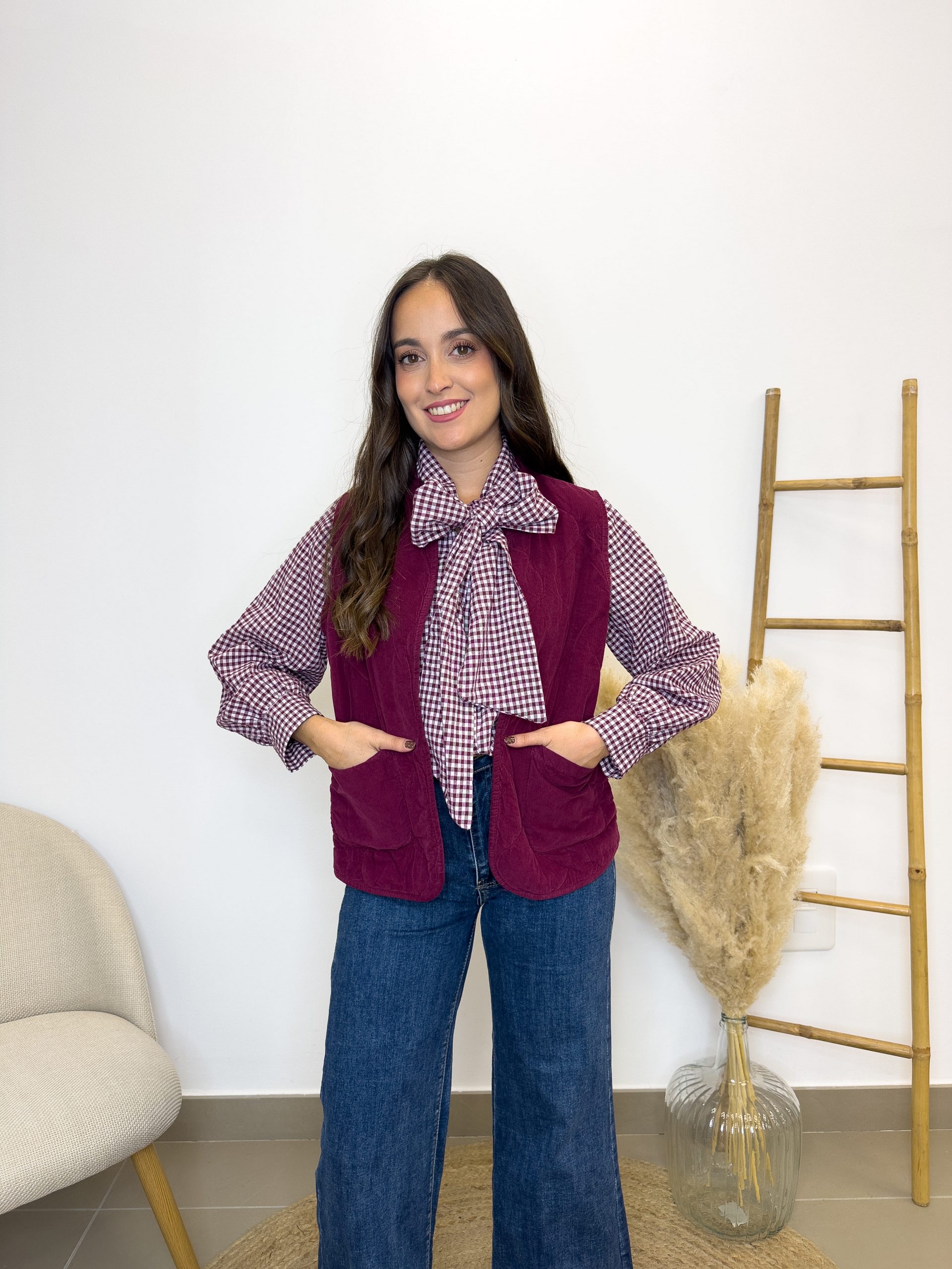 Combina de maravilla con la blusa vichí del lazo, creando un conjunto femenino, especial y con mucha personalidad. De esos que te hacen sonreír cuando te miras al espejo. 🌸✨