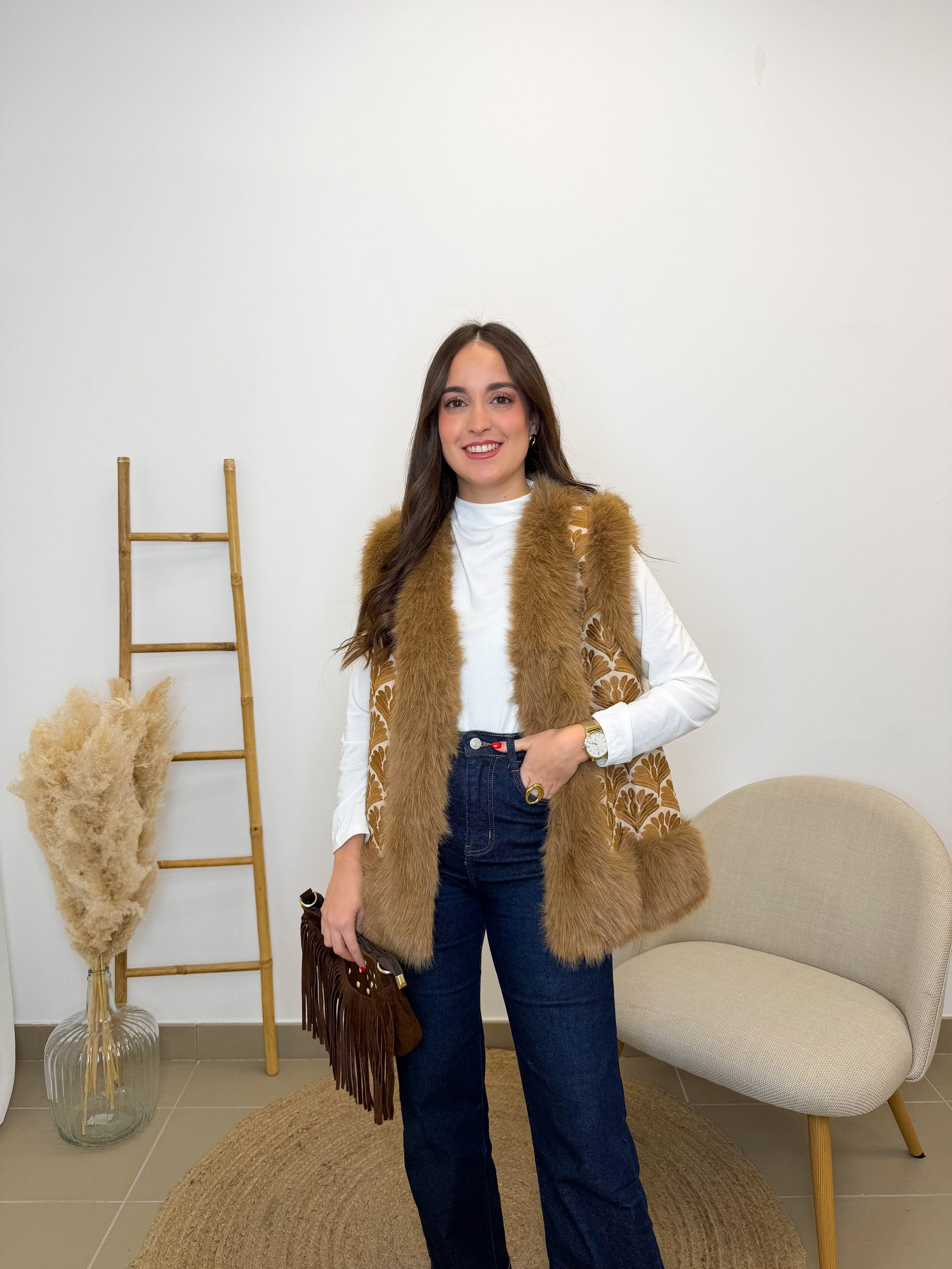 Es de esos chalecos que elevan un look sencillo al instante: sobre una blusa blanca, un vestido fluido o incluso un jersey básico. Aporta calidez, estilo y ese aire boho que tanto nos gusta. Una prenda con alma, pensada para acompañarte en mil planes. ✨🌾