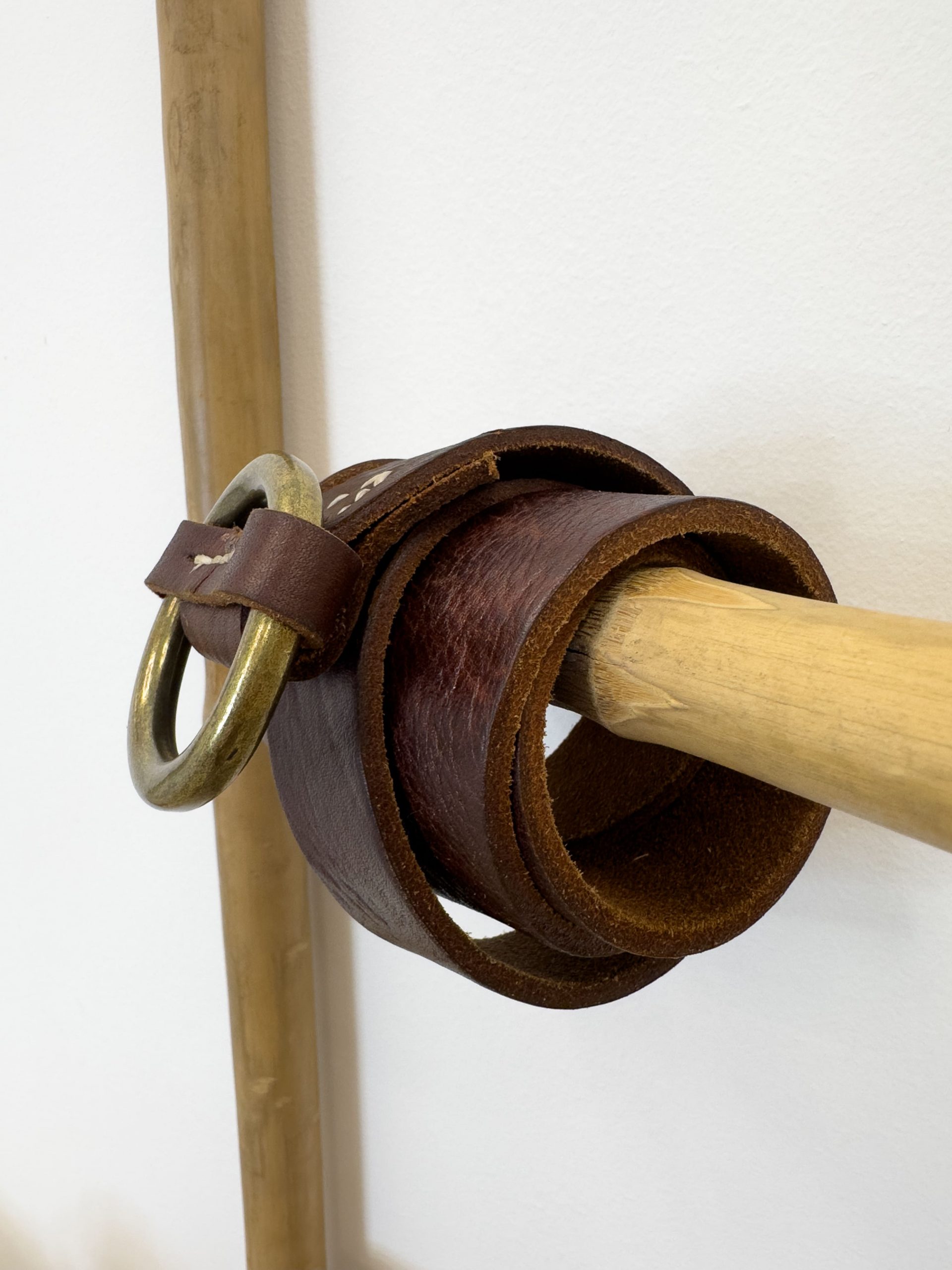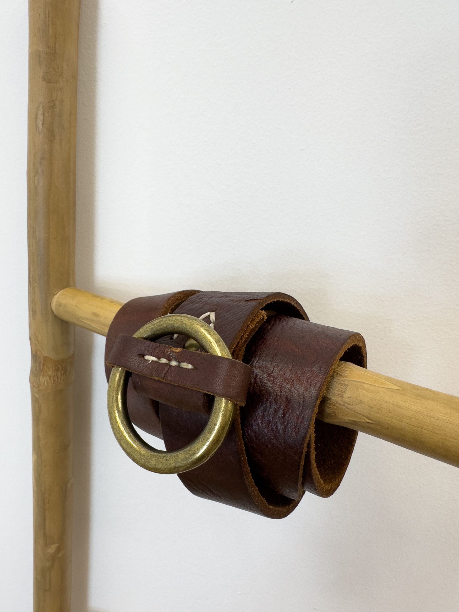 Hecho en 100% cuero vacuno, con hebilla dorada que aporta elegancia y acabados bordados en blanco que marcan la diferencia. Su diseño ajustable sin agujeros lo hace práctico y cómodo, adaptándose a ti a la perfección.