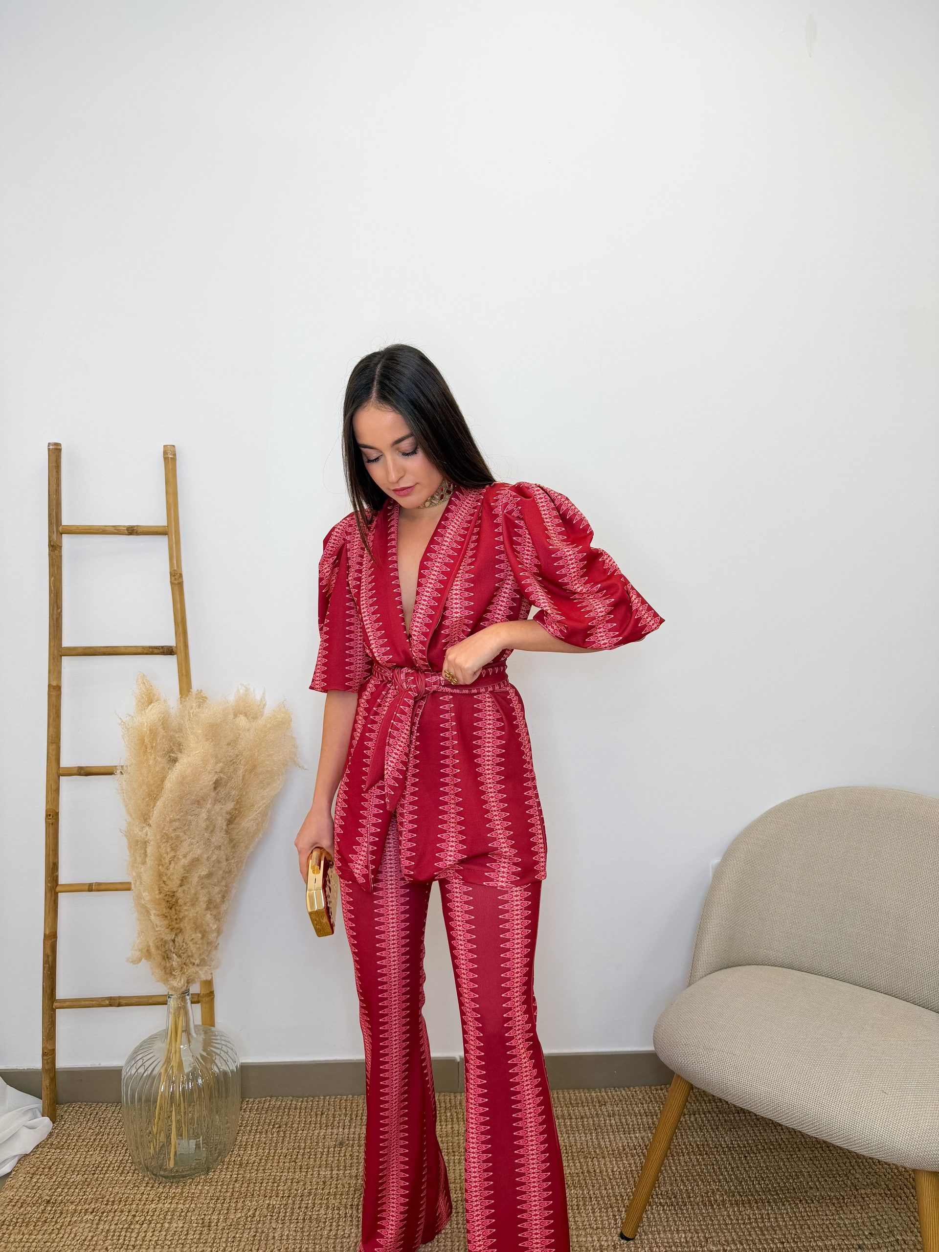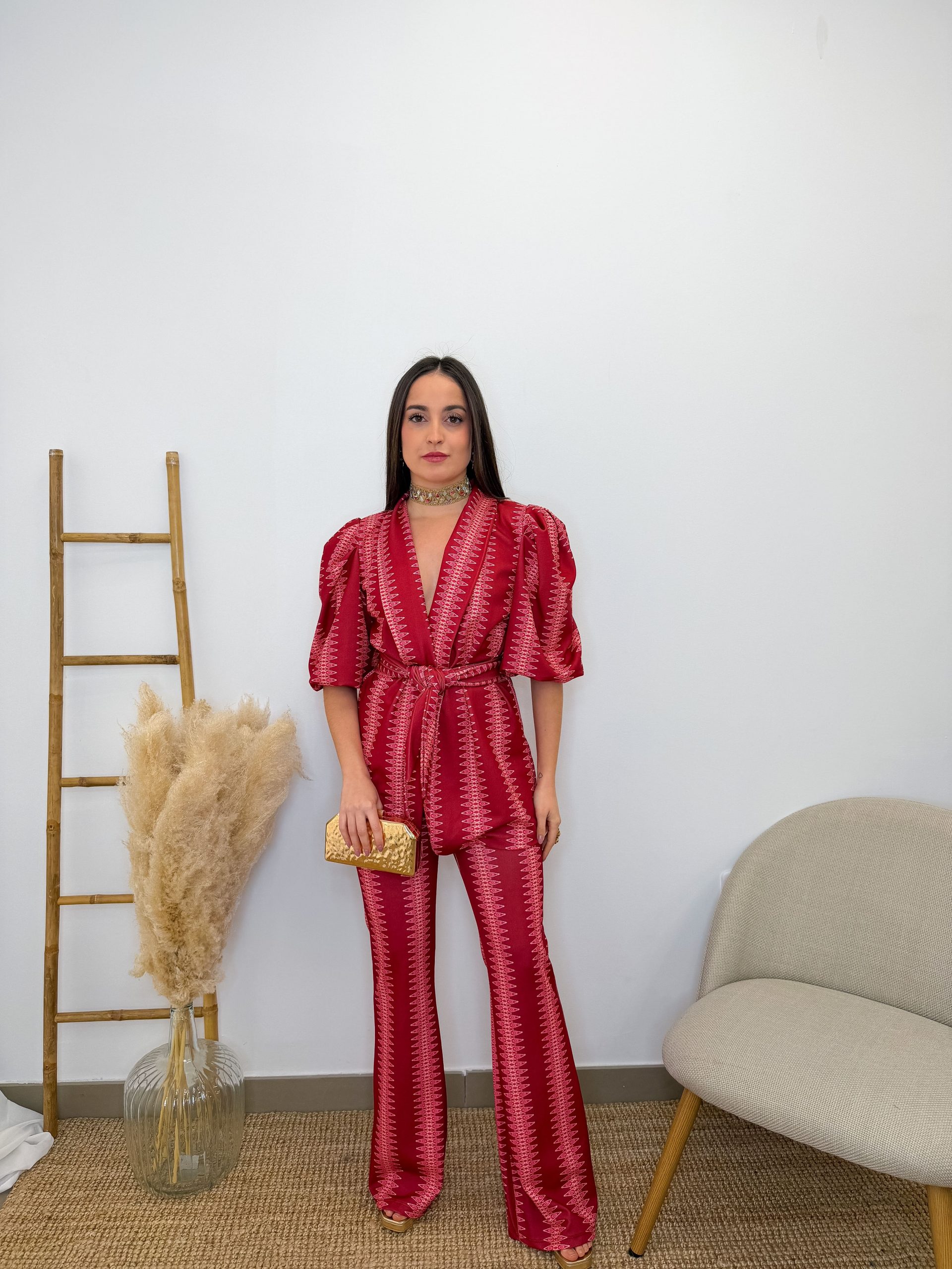 ❤️ Un conjunto con fuerza, de esos que entran en una habitación y se notan. El rojo intenso transmite seguridad y ese punto de energía que cambia por completo cómo te sientes cuando te lo pones.