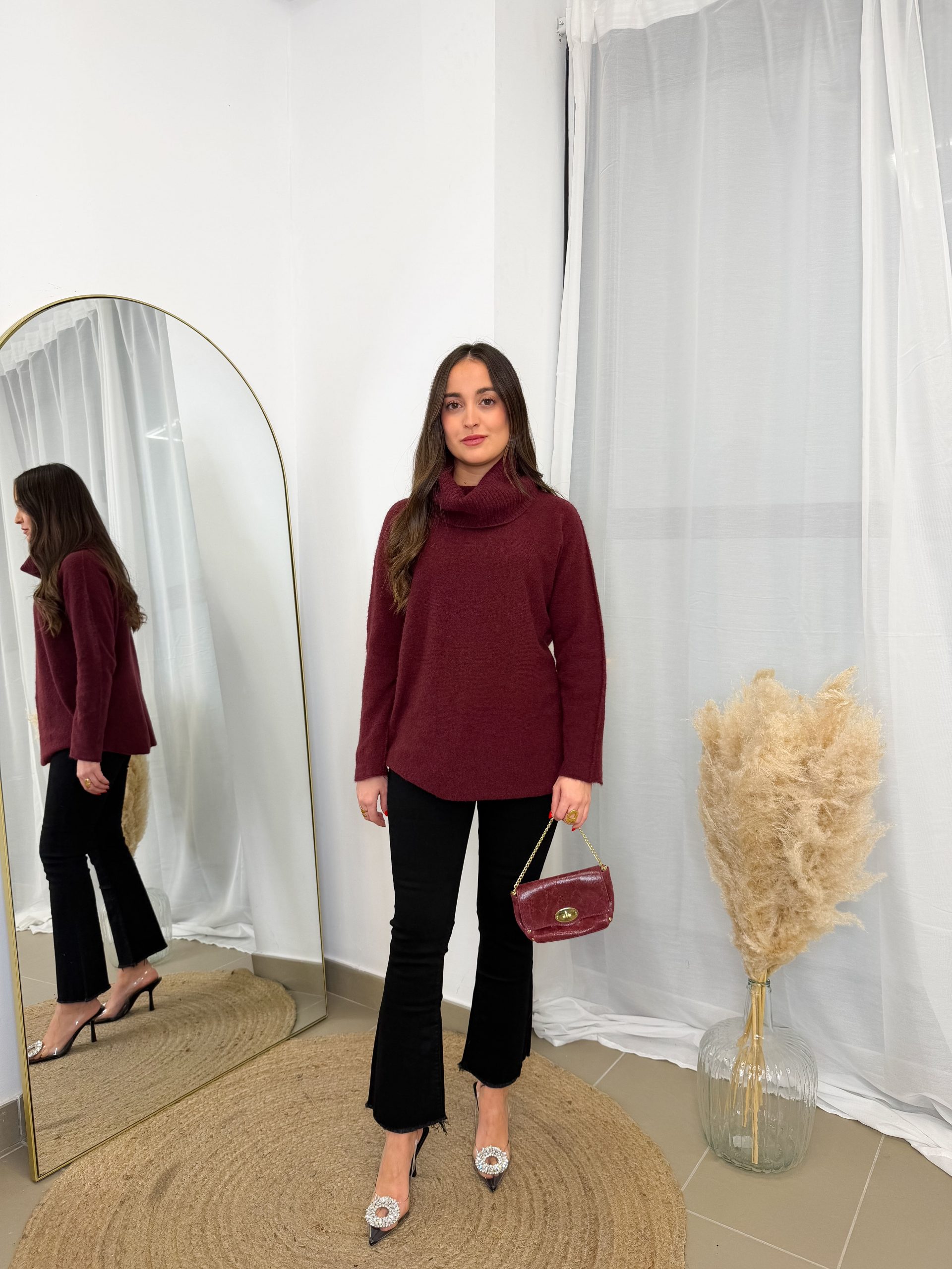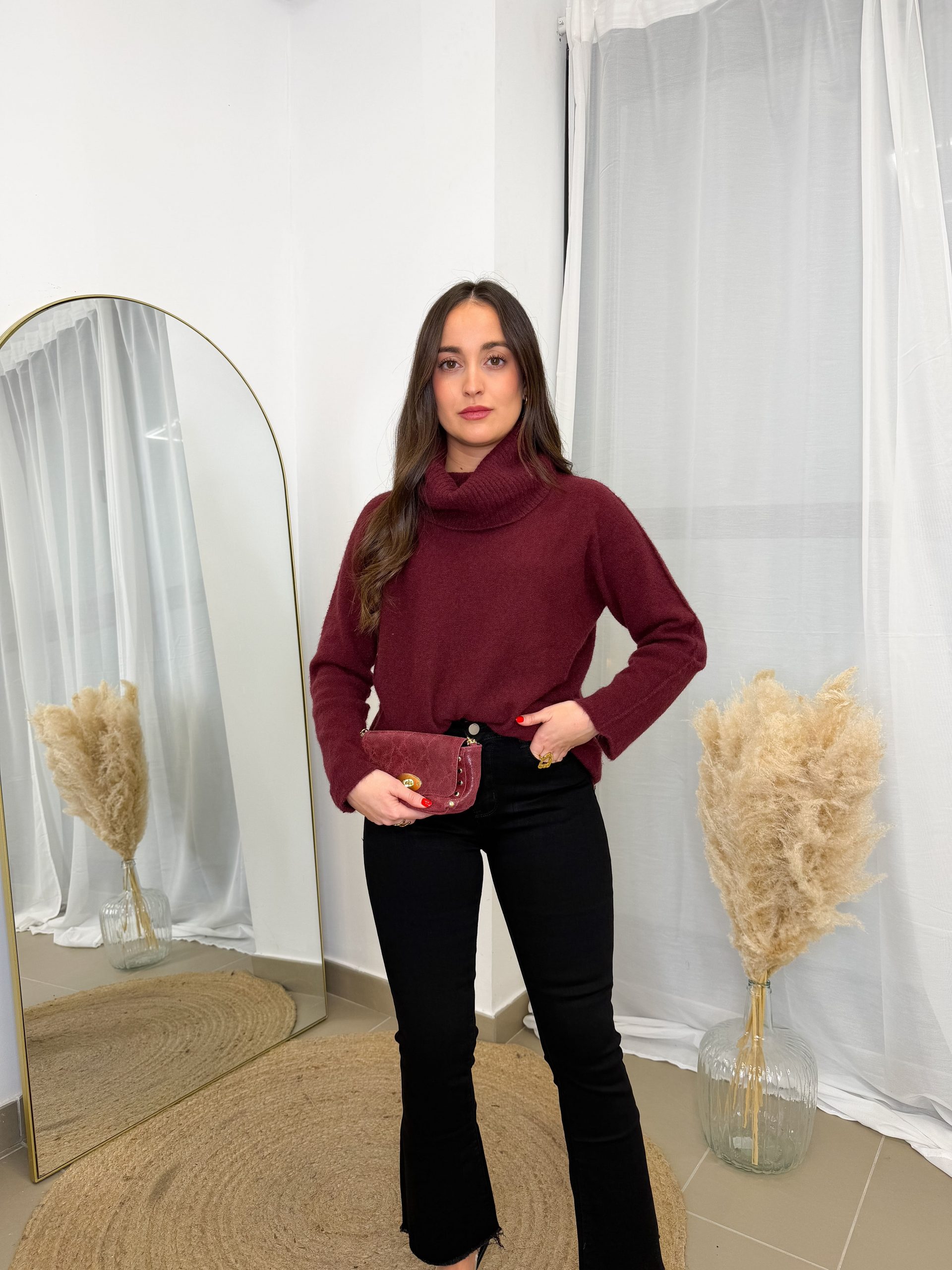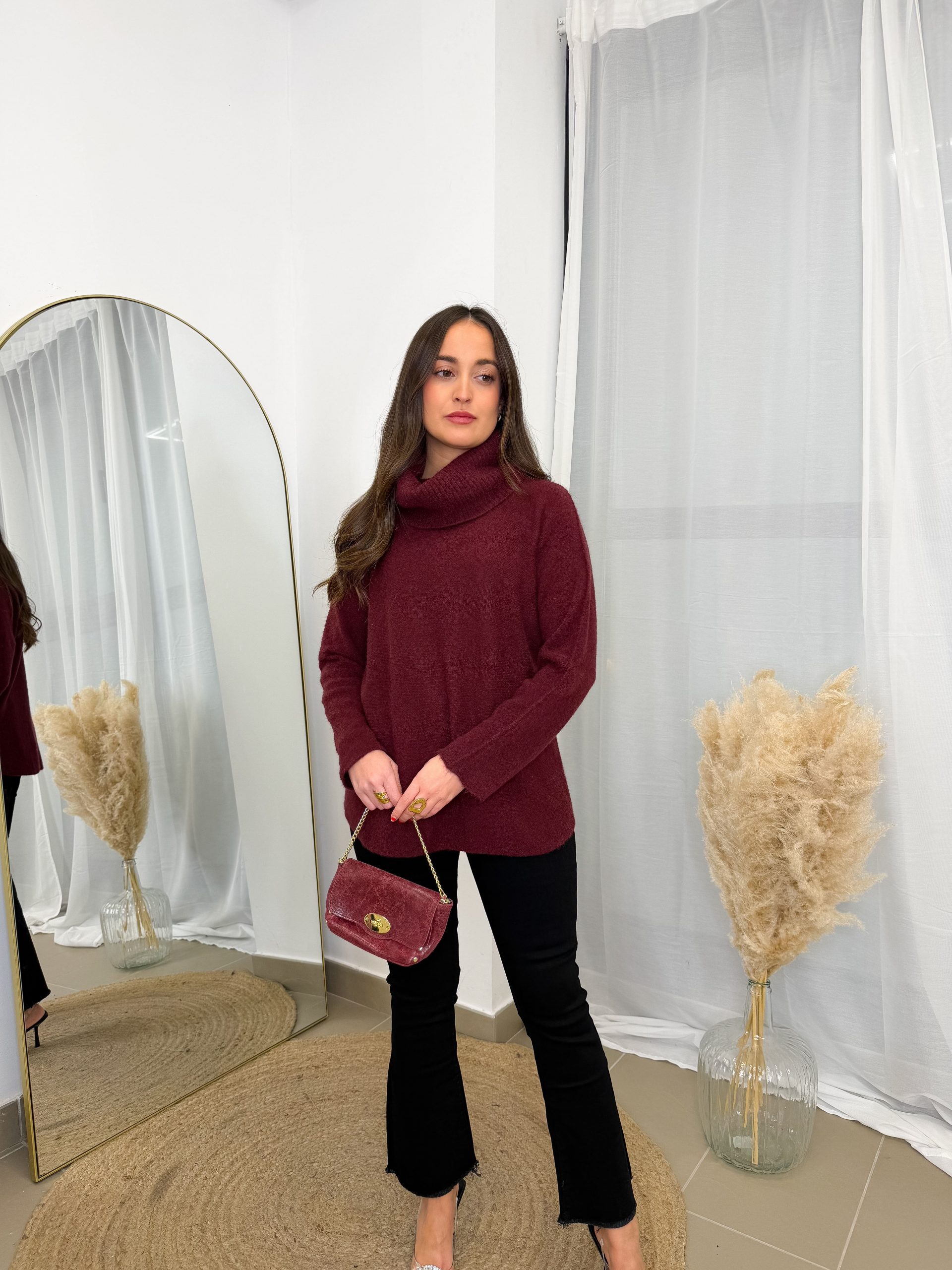 Tiene ese aire relajado que enamora desde el primer momento. El color burdeos es profundo, elegante y muy favorecedor, de los que dan calidez al look y lo hacen especial sin esfuerzo.