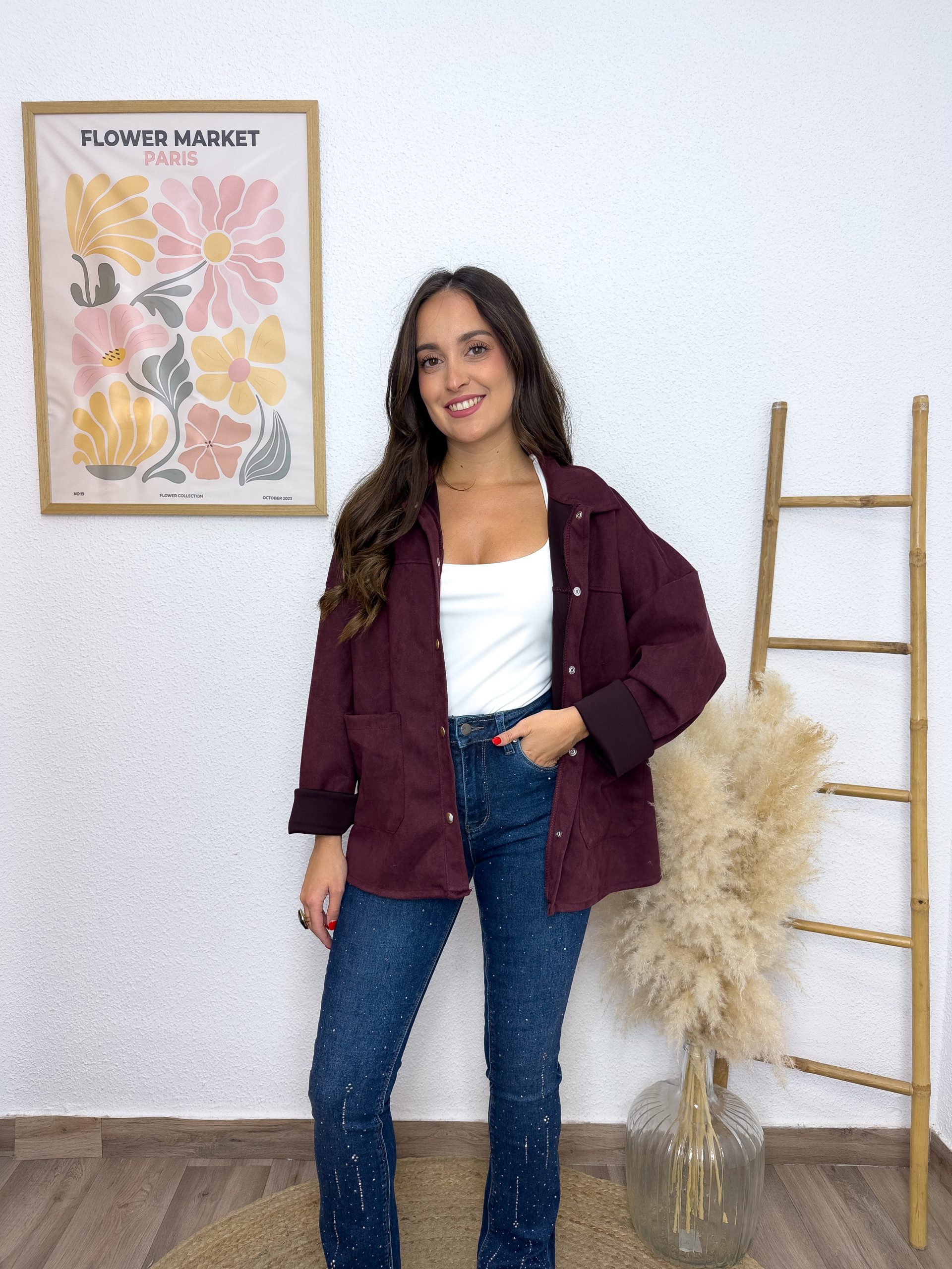 Cuando te lo pones, sientes la elasticidad y comodidad que te acompaña todo el día, mientras el corte recto estiliza tu silueta sin apretar. El azul oscuro combina con todo, y las costuras marrones le dan ese toque cálido y cuidado que marca la diferencia.